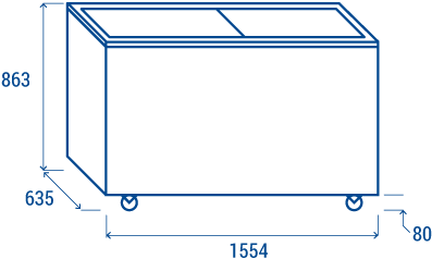 Abmessungen außen (B × T × H): 1554 × 635 × 863 mm