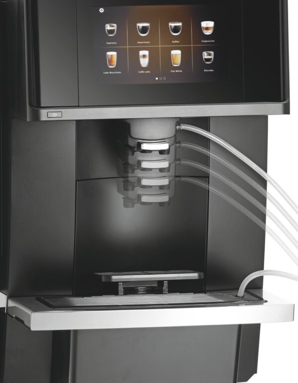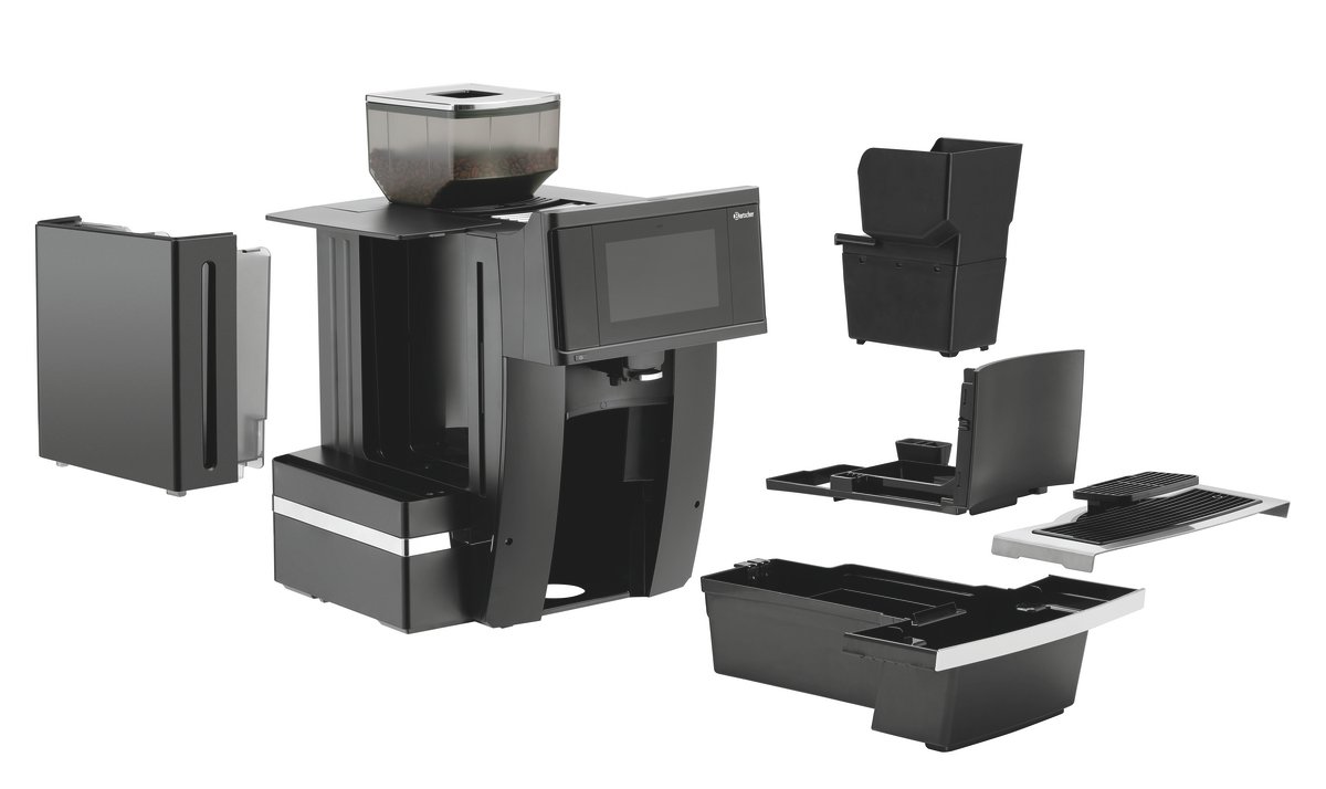 • Eigenschaften: Bodenplatte mit Ausschnitt für einen automatischen Trester Auswurf Kaffee und Milchschaumzubereitung parallel möglich Speicher der Reinigungszyklen