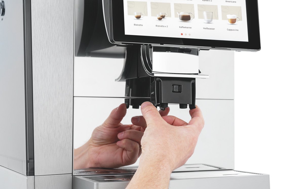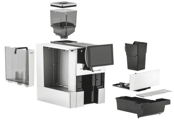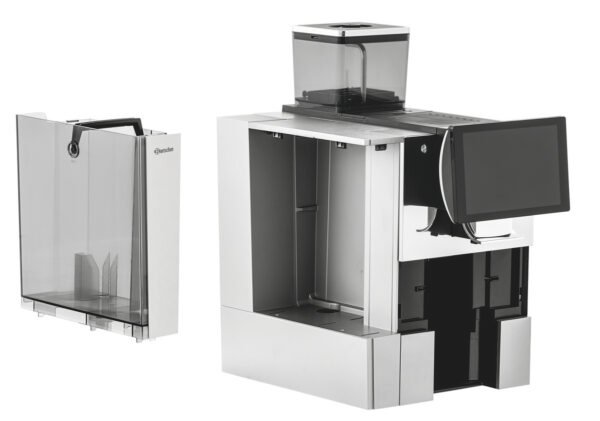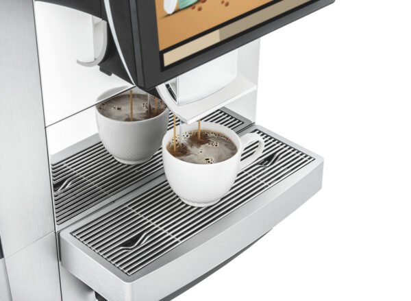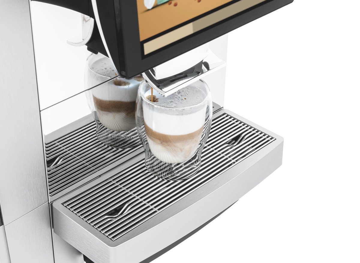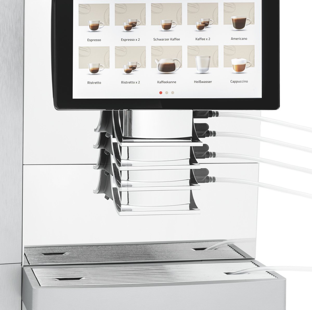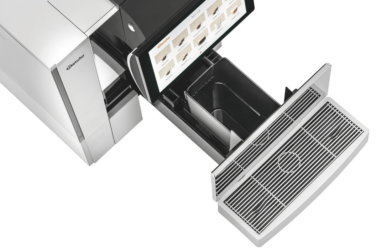 • Eigenschaften: Bodenplatte mit Ausschnitt für einen automatischen Trester Auswurf Kaffee und Milchschaumzubereitung parallel möglich Speicher der Reinigungszyklen