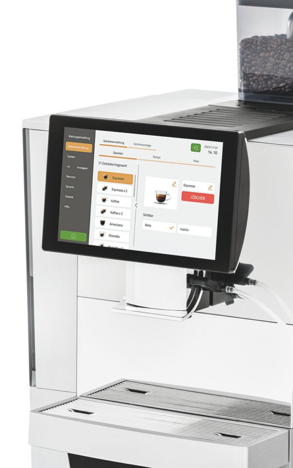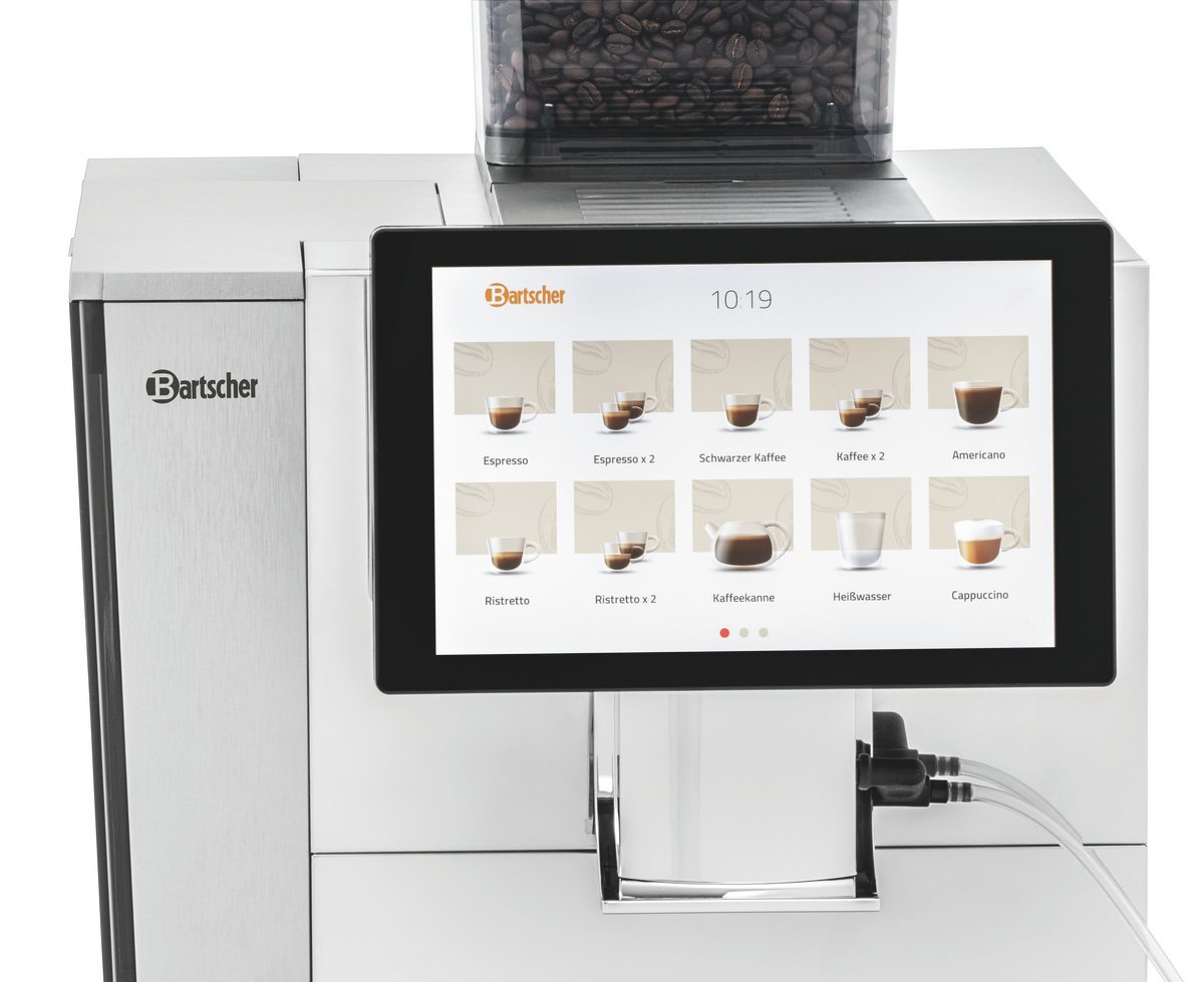 • Einstellmöglichkeiten: Mahlgrad 5 stufig Kaffeedosierung Wassermenge Wassertemperatur Milchmenge Videoanzeige