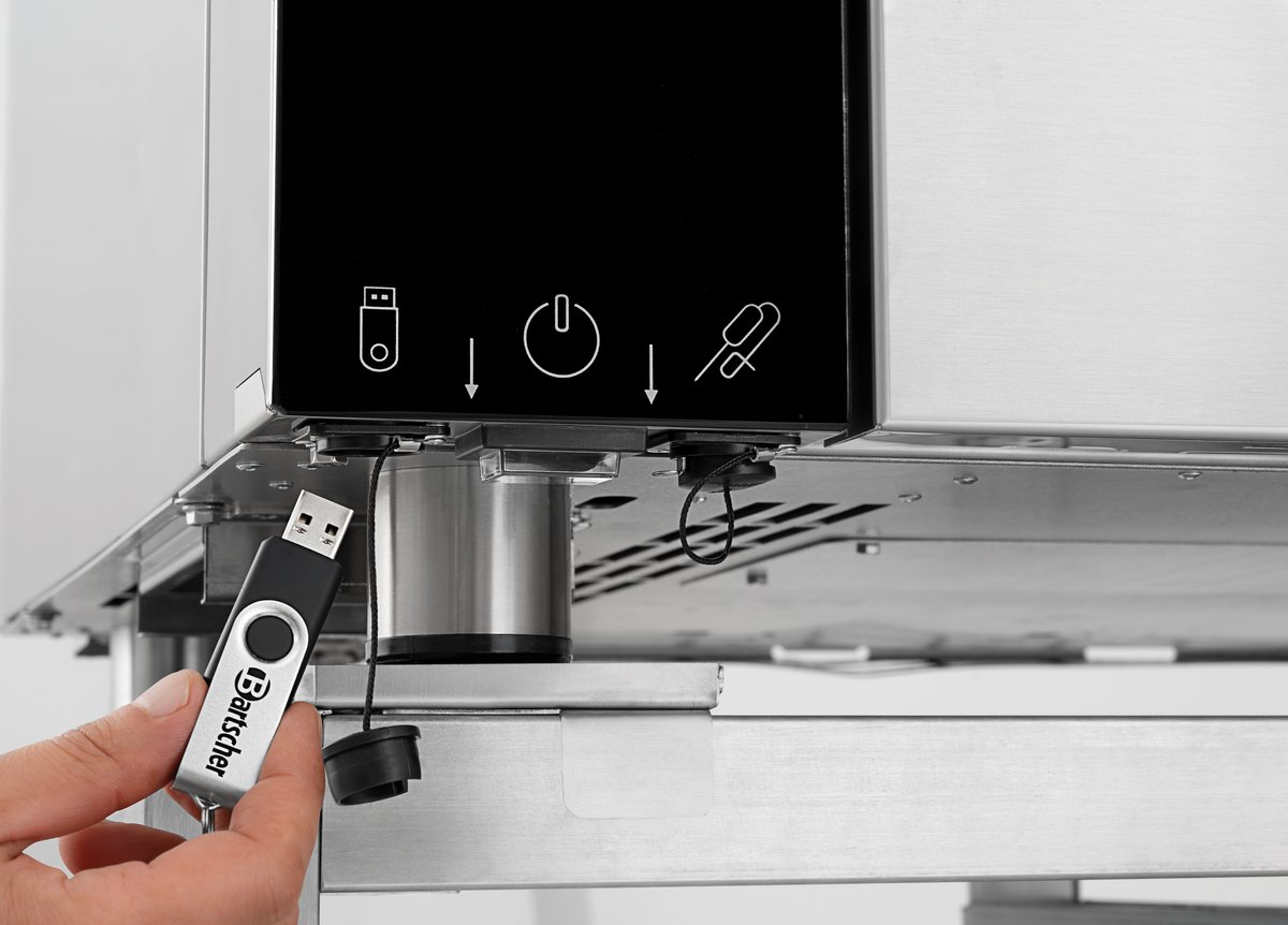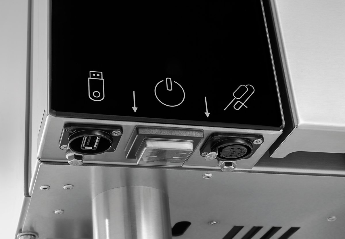 • Kerntemperaturfühler-Anschluss: Front, unten