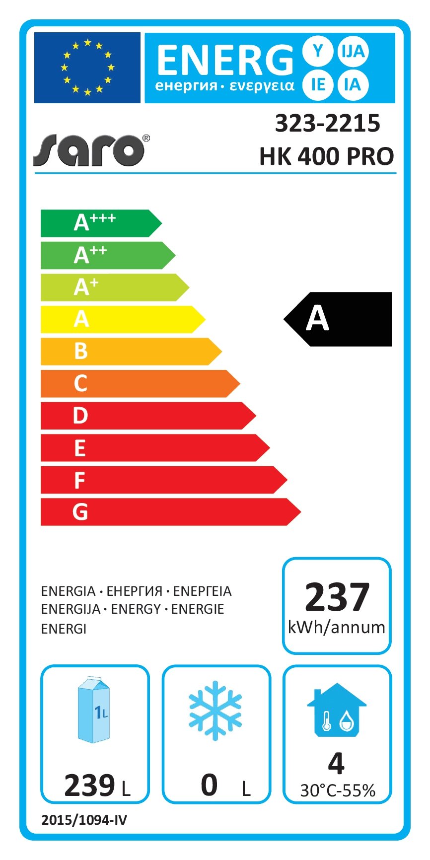 kühlschrank modell hk 400 pro 361 liter, 2/+8 °c, statische kühlung saro