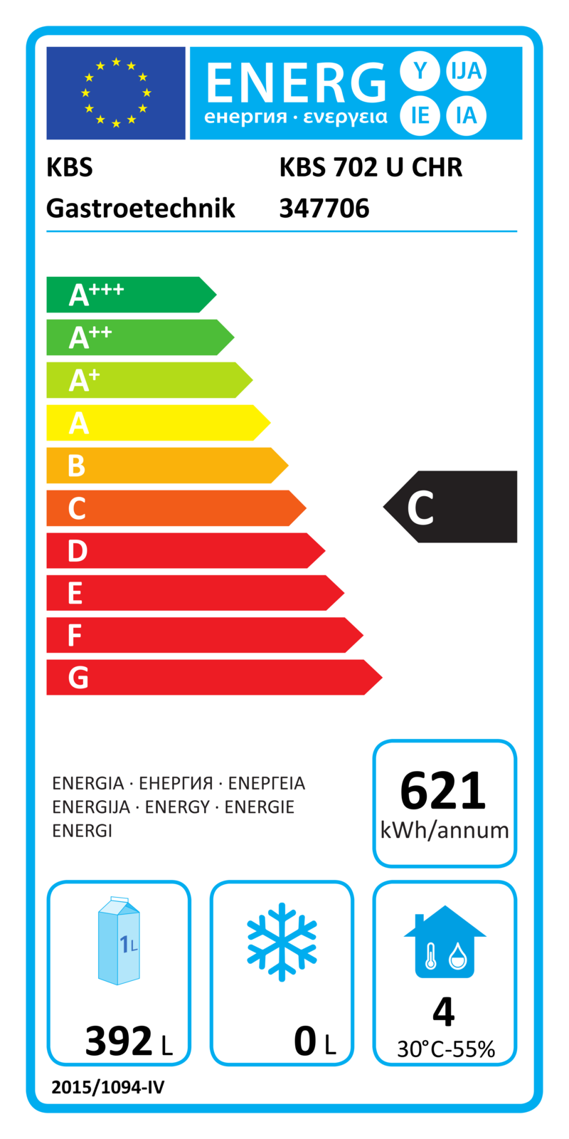 Energieeffizienzklasse: C (Spektrum A+++ bis G)